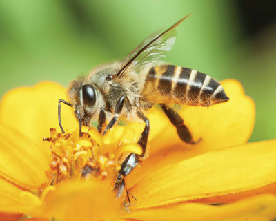 Bees have a special mouthpart. It looks like a straw. They use it to get food from flowers. Bees carry pollen from flower to flower. Some bees produce honey for us to eat.