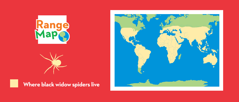 Black widow spiders live around the world. They are often found in warm places. Only female black widows spin webs.