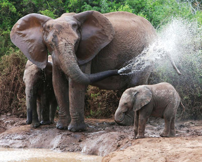 Elephants live in groups called herds. The oldest female leads her herd. She is called the matriarch. Female elephants usually have one baby. Elephants can live to be 50 years old.