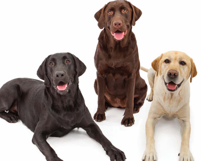 Labrador retrievers come in three colors. They are black, chocolate, and yellow. Labrador retrievers are large dogs. They can grow to be 100 pounds (45 kg).