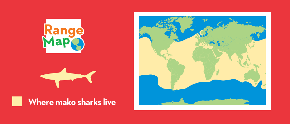 Mako sharks live in oceans around the world. They are usually found near the water’s surface. Some makos live close to shores. Others live far out at sea.