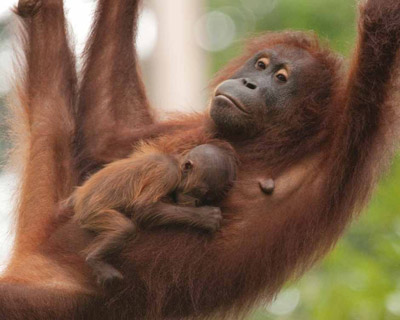 Mother orangutans have one baby at a time. They live with their young as long as seven years. Adult orangutans live alone most of the time. They live up to 40 years in the wild.