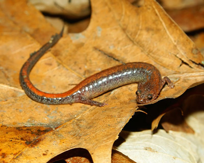 Salamanders have a long tail. Their skin has poison. This helps them escape predators. Some salamanders have spots or stripes. Most have four short legs. Some only have two legs. If a salamander loses a limb, that limb can grow back.