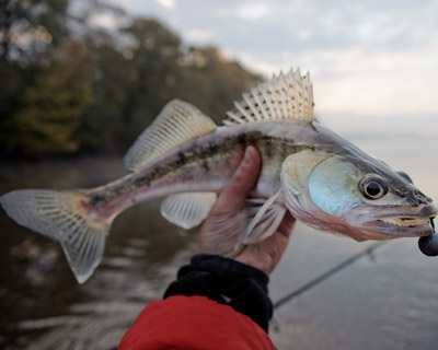 Walleyed pike are strong swimmers. They have marble-shaped eyes. The eyes allow them to see very well in dark water. This helps them catch their prey.